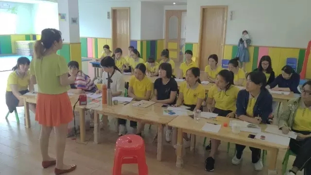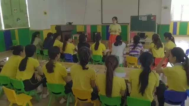 (以上图为讲师模拟课堂教学。杨莹讲师让教师充当学生,模拟真实教学环境,为教师授课,让教师充分感受到课堂的氛围,体会教学技巧。让教师在以后的实际教学中能够运用更多的方式,给课堂带来更好的教学效果!)