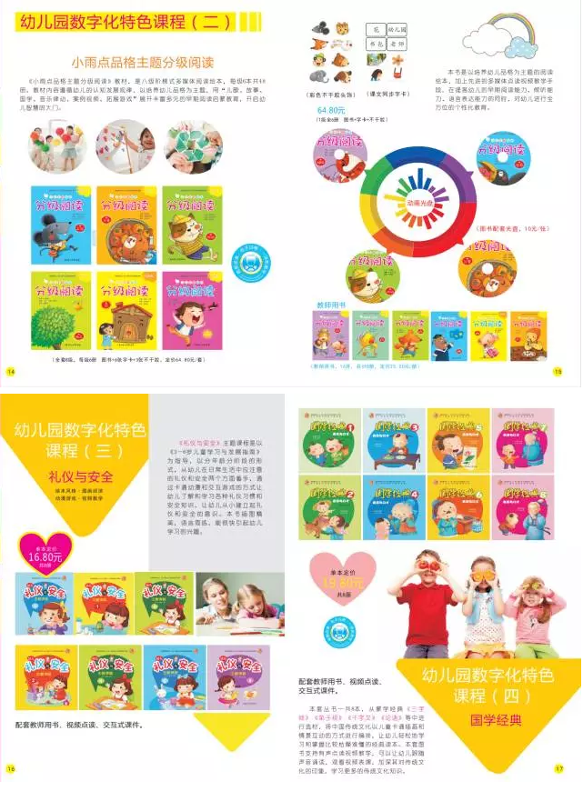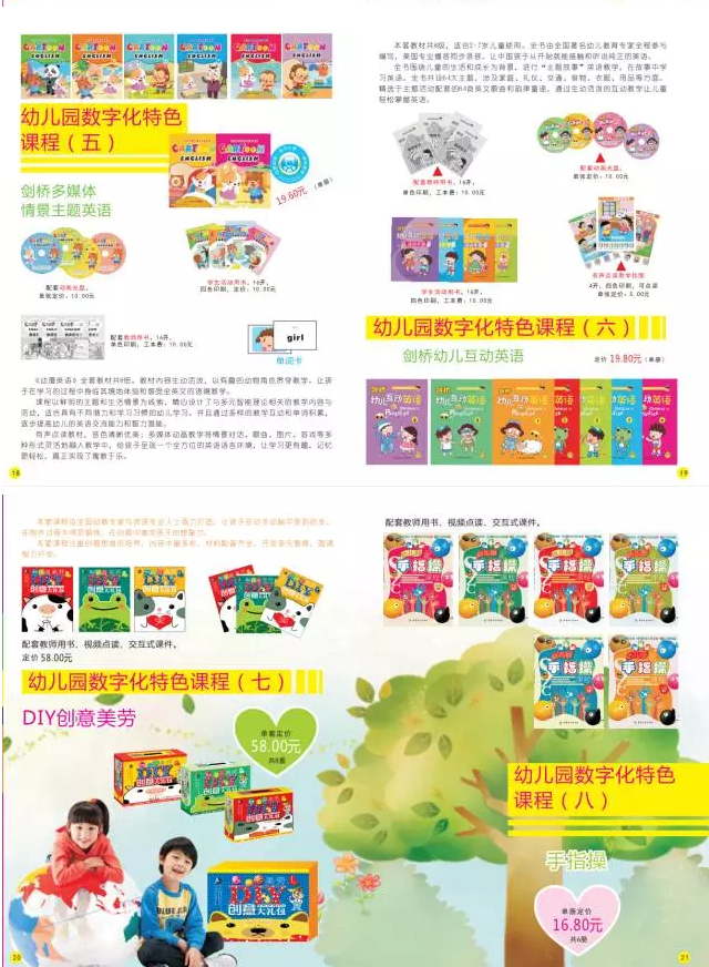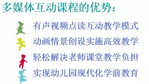 多媒体幼儿园视频点读教材(包含五大领域主课程、早期阅读课程、幼儿剑桥动漫英语课程、幼儿园才艺主题整合课程、国学经典、礼仪与安全、幼儿园绘本教学课程、幼儿主题绘本阅读课程、幼儿创意美劳课程等),它不仅填补了幼儿园多媒体课程的空白,也使中国的幼儿园教育教学手段与国际接轨。
