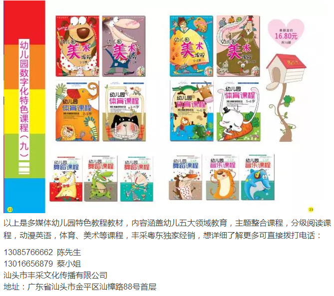 丰采文化粤东独家经销: 多媒体教学系列,受到粤东地区各大幼儿园的热烈追捧。点读教材可根据幼儿园自身需要,配套不同的教学电子产品,从而实现不同的效果,是致力于打造现代化教育的专业产品,可通过多媒体的视频动漫点读教学,给幼儿营造生动活泼、丰富多彩的教学环境。