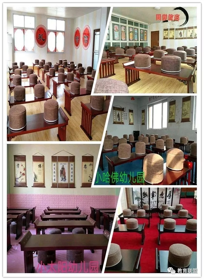 丰采文化秉承育人育心、养性扎根,知行合一致良知的理念。应时而变,古为今用,精心选材,是国内首家为幼儿园免费倾情打造国学教室。
