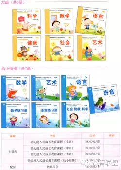 该丛书包括小班、中班、大班和幼小衔接4个班级,其中小班、中班和大班每学期都分为语言、健康、社会、数学、科学和艺术6册,幼小衔接班将社会、科学和健康融合为综合本,另外还增加了拼音、语言练习册和数学练习册。每个阶段都配有一本与教材对应的教师用书。