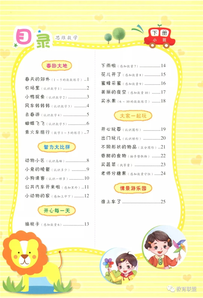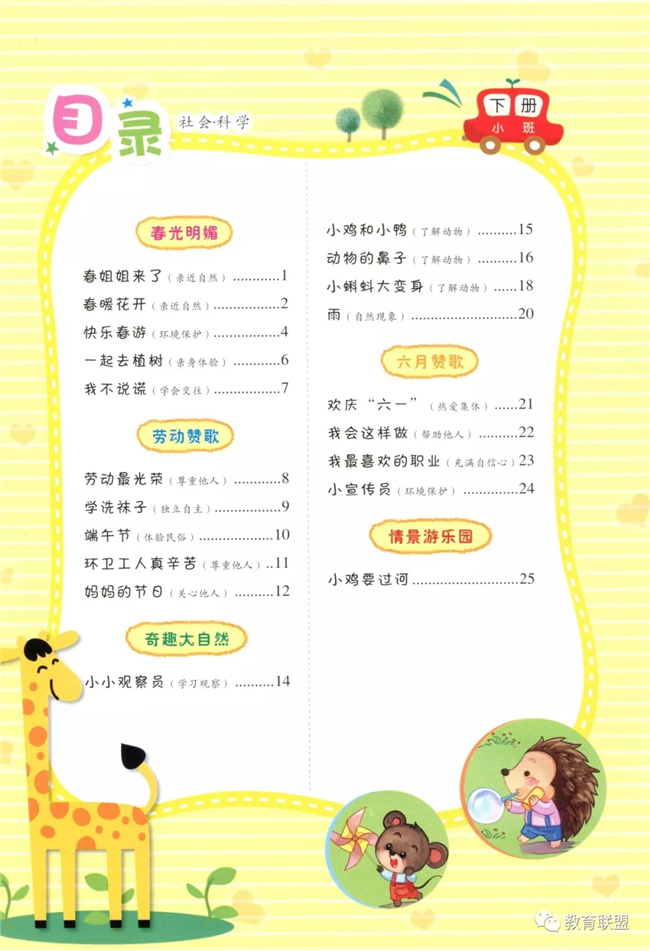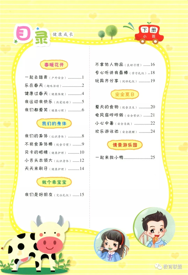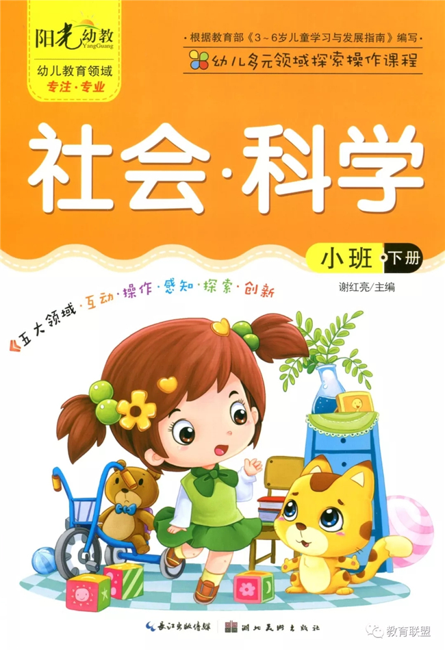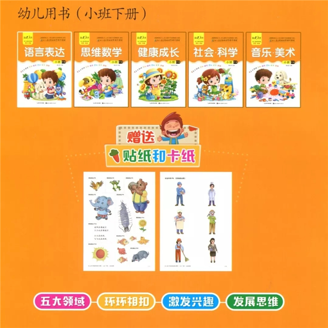 本套教材由湖北美术出版社出版,分为上下册,每册包含:语言表达、思维数学、音乐美术、社会科学、健康成长。还有赠送贴纸和卡纸。每册定价42.80元.