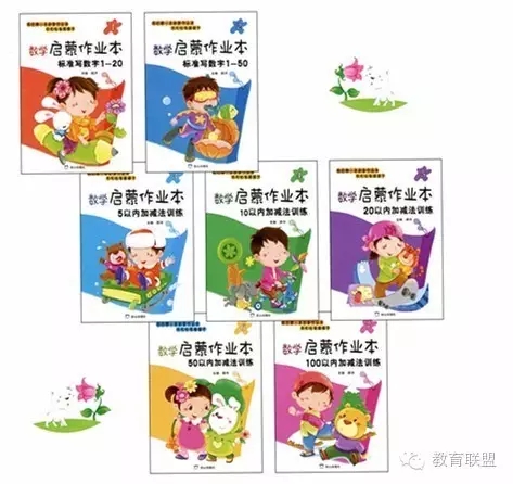 《数学启蒙作业本》,共分为7册,对应的内容按顺序分别是:标准写数字1-20,标准写数字1-50,5以内加减法训练,10以内加减法训练,20以内加减法训练,50以内加减法训练,100以内加减法训练。