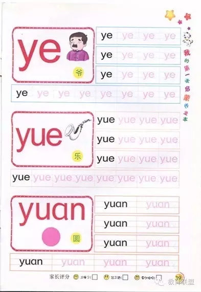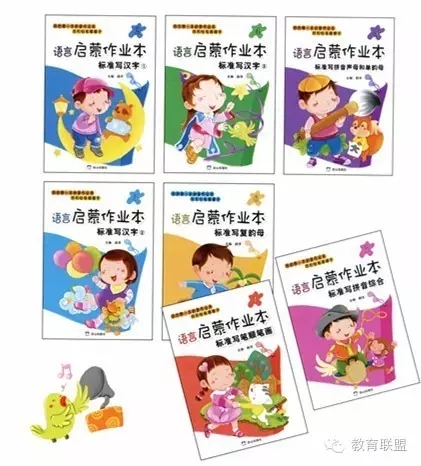 《语言启蒙作业本》共分为7册,标准写汉字1-3,标准写拼音声母和单韵母,标准写复韵母,标准写笔顺笔画,标准写拼音综合。